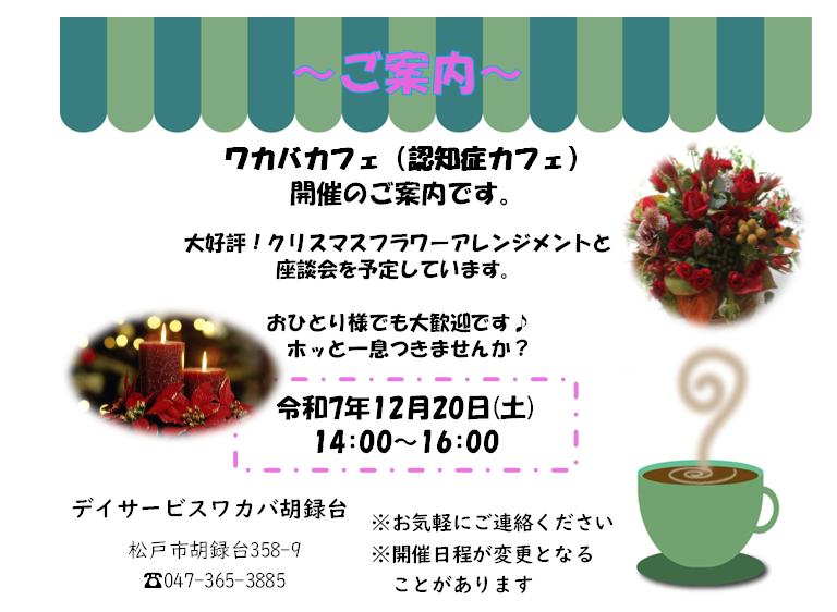 • 2024/12/01 ワカバカフェ開催のご案内《デイサービスワカバ胡録台》