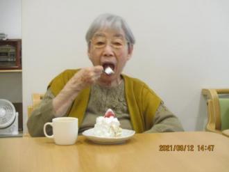 ショートケーキを召し上がり、プレゼントを渡すとニコニコ笑顔(*^-^*)