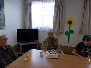 誕生日プレゼントを渡し、一緒にケーキを食べお祝いしました(*^^)v