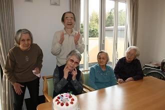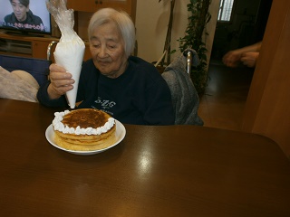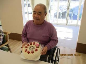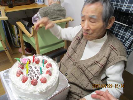 1月がお誕生日の方の為に、入居者様と一緒にケーキを買いに行きました。