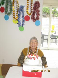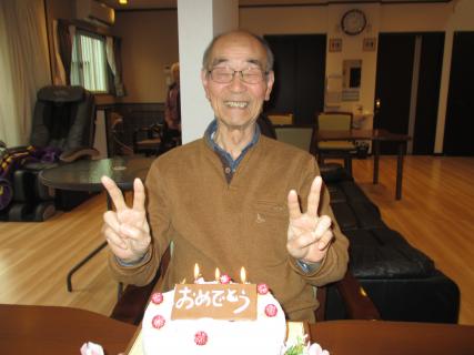 誕生日プレゼントを渡し、一緒にケーキを食べお祝いしました(*^^)v