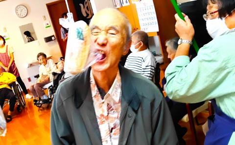 湖北台ケアガーデンワカバでは、「パン食い競争」を行いました。