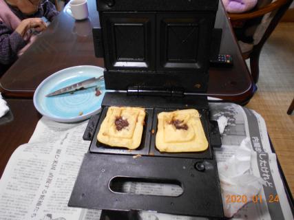 3時のおやつにホットサンドメーカーであんこ入りパンケーキを作りました
