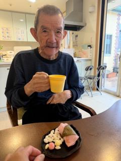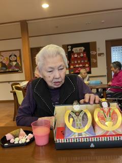 おやつに<桜餅、ひなあられ、甘酒>を提供すると、