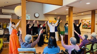 合唱ボランティアの演奏では、懐かしいなーと涙を流されている方も…。