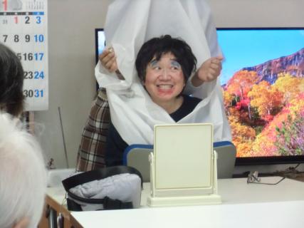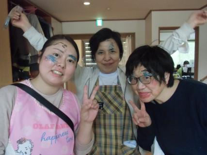 お次は利用者さんがスタッフのお化粧に挑戦!!