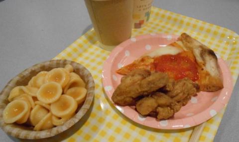 先ずは、ピザとパスタ、鶏のから揚げで腹ごしらえ。