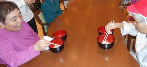ノンアルビールで乾杯し、プチお節ときりたんぽ鍋、お赤飯のおむすびを囲み、皆さん次々とお替りをされ、美味しい笑顔が溢れていました。